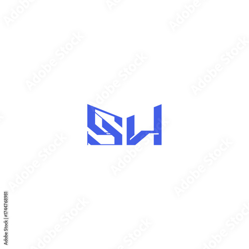 Obraz premium monogram initial logo design square concept abstract SH techno geometric...