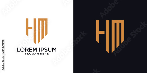 Obraz premium Monogram logo design initial letter h combined with shield element and creative concept