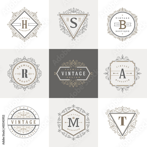 © sergo77, Obraz premium Monogram logo template with flourishes ornament elements