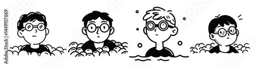 Obraz premium Monoline Doodle Coloring Page of Boys with Glasses in Bubbles