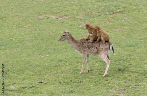 © marcantabrico, Fototapeta premium MONOS SUBIDOS AL LOMO DE UN CIERVO