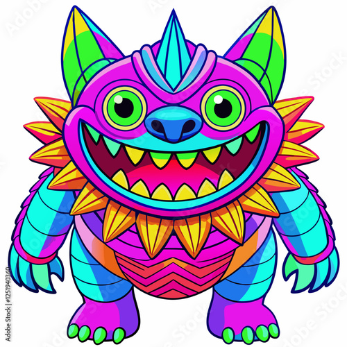 Fototapeta premium monster in neon colors isolated vector graphic on white background as print template