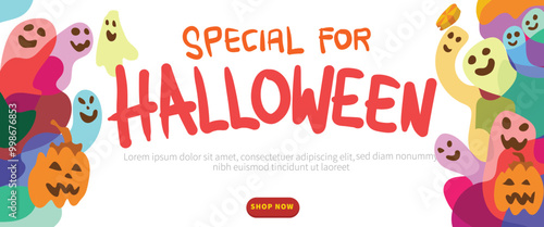 © vektor junkie, Fototapeta premium Monster Mash Halloween Extravaganza concept. abstract geometric liquid form. monster halloween with hand drawn banner template vector illustration.