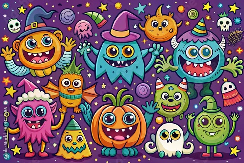 Obraz premium * Monster mash Halloween illustrations fun cartoonish 90s style bright bold colors