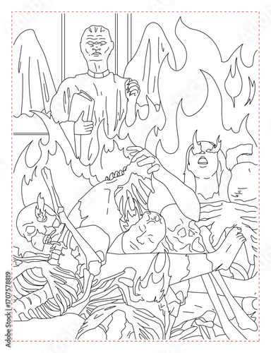 © Graphicworld, Fototapeta premium Monster Warming Up Coloring Page: Grotesque Creature Art