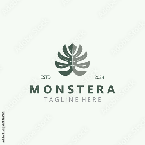Obraz premium Monstera deliciosa leaf nature logo design, flat plant icon design...