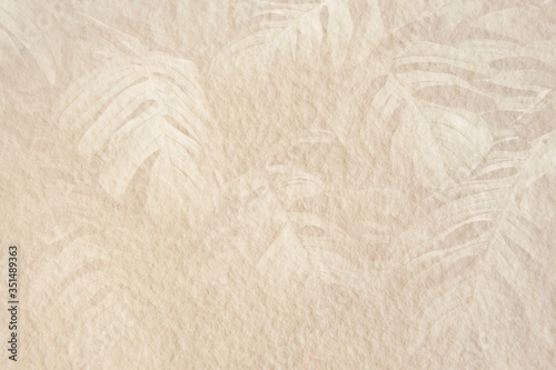 Obraz premium Monstera leaf pattern on a beige cement background illustration