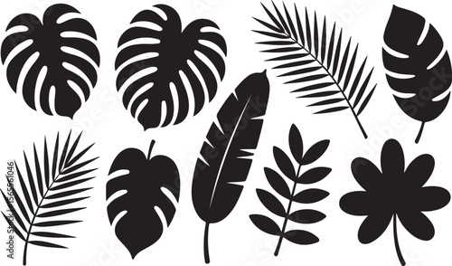 Fototapeta premium Monstera palm banana and clover leaves monstera leaves palm fronds