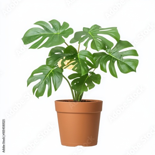 Obraz premium Monstera plant in a brown pot, white isolated background.