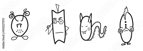 © Ксения Колесник, Fototapeta premium Monsters line art vector illustration
