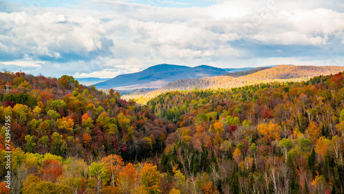 © Vincent Jiang, Obraz premium Mont Blanc,Canada - October 15 2023: Autumn colorful view of Panorama from Sentiers de Cime de Laurantide