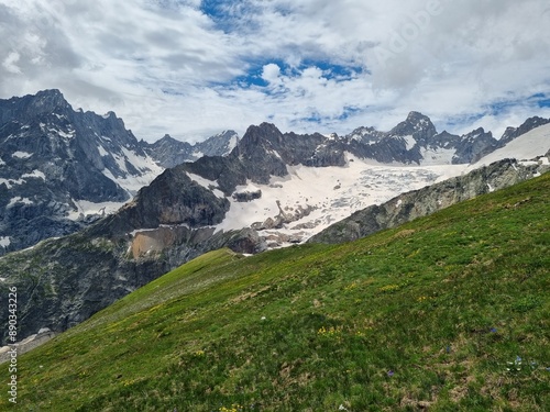 © Vasyl Diachuk, Naklejka premium Mont Blanc mountain massif Chamonix valley, France,