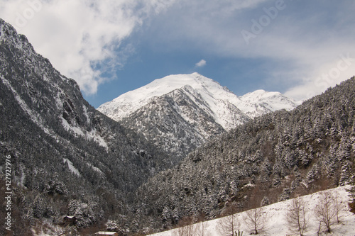 © DanielaBelen, Fototapeta premium montañas con arboles nevados