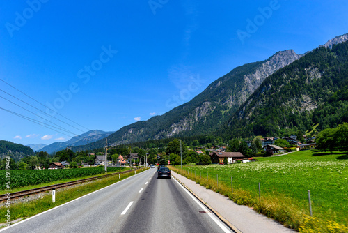 © Ilhan Balta, Naklejka premium Montafoner Straße (L 188) in Vorarlberg/Österreich