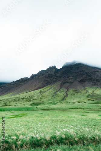 © ElisaPhoto, Fototapeta premium Montagna nera e verde immersa nelle nuvole