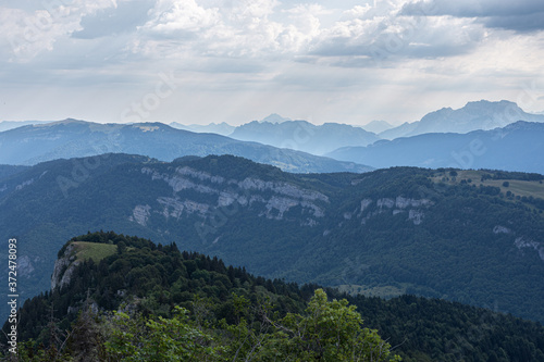 © yamathom, Fototapeta premium Montagnes nuages et soleil