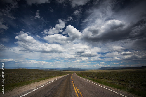 Naklejka premium Montana, Big Sky Country with dramatic clouds over back country road