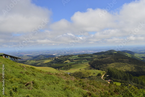 © @trabalho.paraisso, Naklejka premium Montanhas verdes e nuvens brancas
