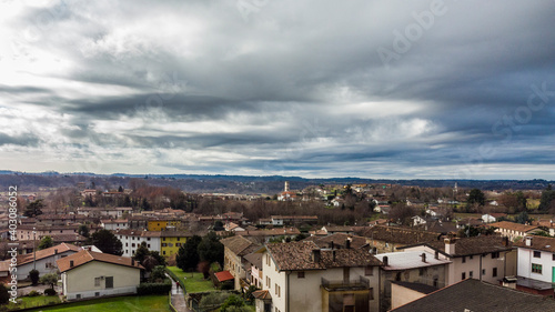 Fototapeta premium Montegnacco, an oasis of beauty in the hills. View from above.