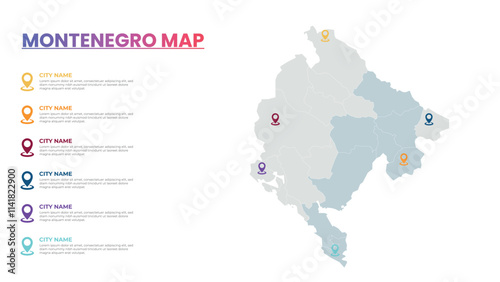 Naklejka premium Montenegro Modern Map Infographic Template, Detailed infographic map of Montenegro Popular City
