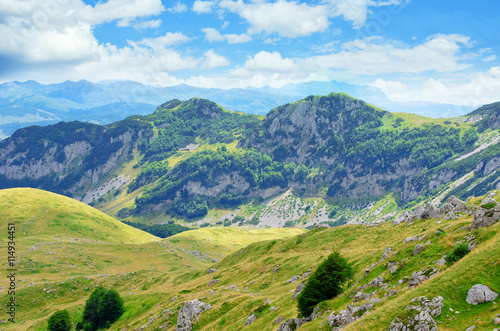 © Della_Liner, Naklejka premium Montenegro, national park Durmitor, mountains and clouds. Sunlight lanscape.