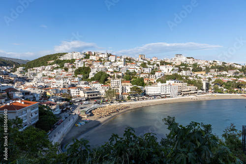 Obraz premium Montenegro: Panoramablick auf die Stadt Ulcinj mit Bucht
