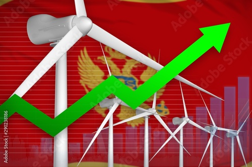 Fototapeta premium Montenegro wind energy power rising chart, arrow up - alternative natural...