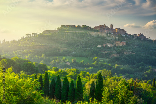 © stevanzz, Obraz premium Montepulciano town skyline at sunset. Tuscany, Italy