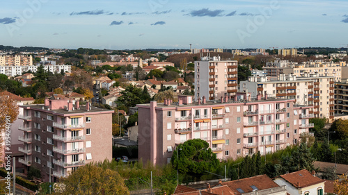 © Adrien, Obraz premium Montpellier is a city near the south coast of France on the Mediterranean Sea. It is the capital of the Hérault department. It is located in the Occitanie region. Sunny day.