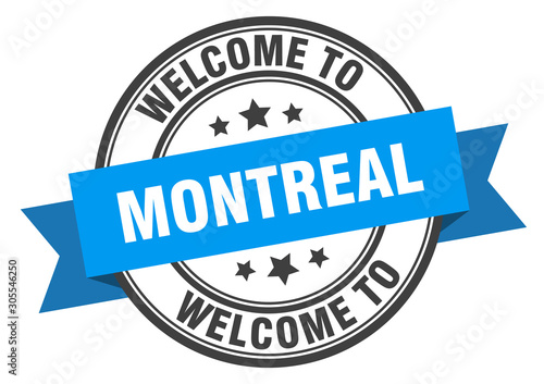 Obraz premium Montreal stamp. welcome to Montreal blue sign