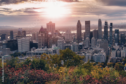 © Firefighter Montreal, Obraz premium Montreal sunrise with autumn leaves colors
