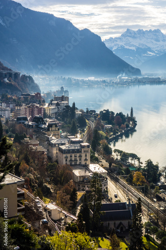 © matho, Obraz premium Montreux, Genfersee und Schloss Chillon, Schweiz