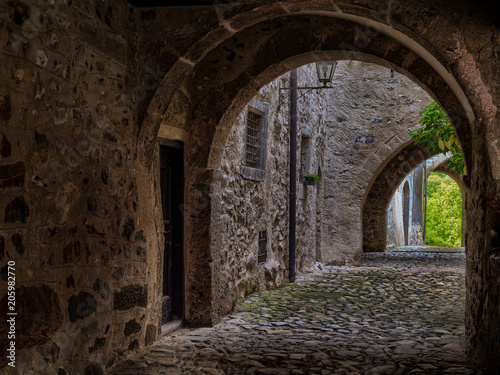 © vpardi, Fototapeta premium Monumentale porticato con arcate in pietra nel borgo medioevale di Cornello di Tasso