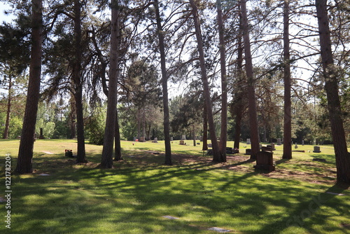 © Jessica Brouillette, Obraz premium Monuments and graves in a cemetery in rural northern Minnesota