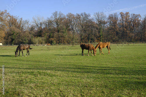 © Claudio Colombo, Obraz premium Monza park: horses at pasture
