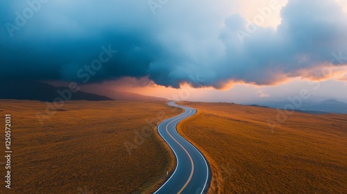© Ryzhkov, Fototapeta premium Moody Aerial Highway in Stormy Landscape Dynamic Visual for Emergency Preparedness Campaigns and Climate Change Awareness in Public Safety Media