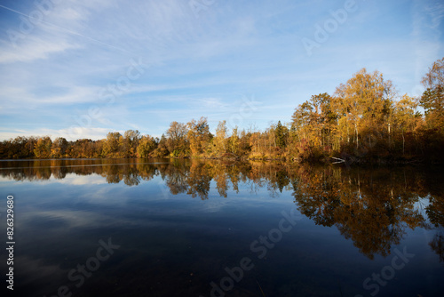 Fototapeta premium Moody autumn nature at the river of Isar in Bavaria Germany