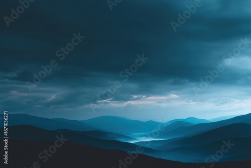 © tygowho, Obraz premium Moody Blue Mountain Range Landscape