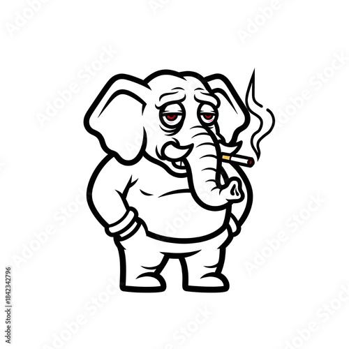 Fototapeta premium Moody Cartoon Elephant Character – Black and White Mascot Illustration