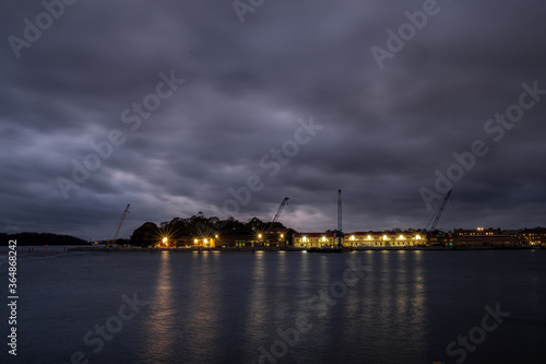 © Tim, Obraz premium moody clouds over waterside warehouse