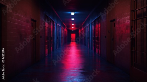 Fototapeta premium Moody Corridor with Neon Lights Atmospheric Hallway Scene for Mystery Horror...