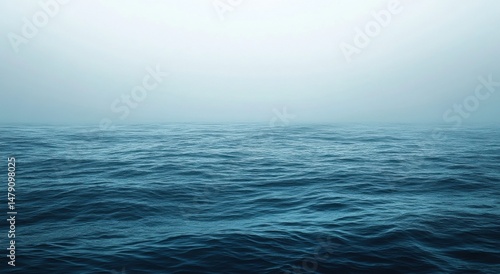 © Yothin, Fototapeta premium Moody Dark Blue Ocean Under Misty Light Blue Sky