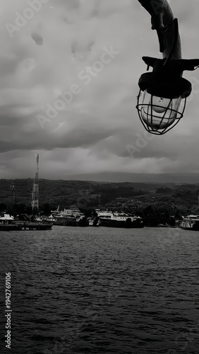 © ndliant, Fototapeta premium Moody Dockside Under Cloudy Skies