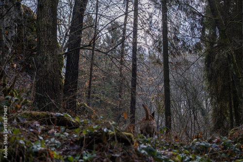 © Nataliia, Fototapeta premium Moody Forest Landscape with Bare Trees and Undergrowth