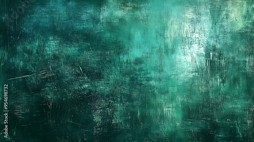 © Khukrit, Fototapeta premium Moody Green Textured Surface with Visible Scratches and Subtle Light Reflections