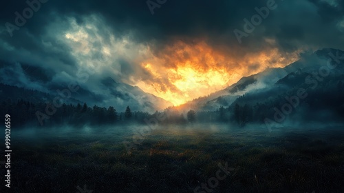 © Dee, Fototapeta premium Moody Lynx Landscape with Dramatic Sunset