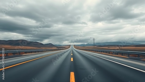 © Xinfang, Fototapeta premium Moody overcast sky over an expansive empty roadway with atmospheric depth.