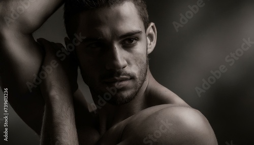 Fototapeta premium Moody portrait close-up of a attractive young man
