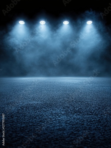 Obraz premium Moody Stage with Blue Spotlights and Smoke Creates an Atmospheric and...
