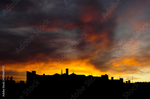 © photoopus, Obraz premium Moody Sunset Over the Rooftops.